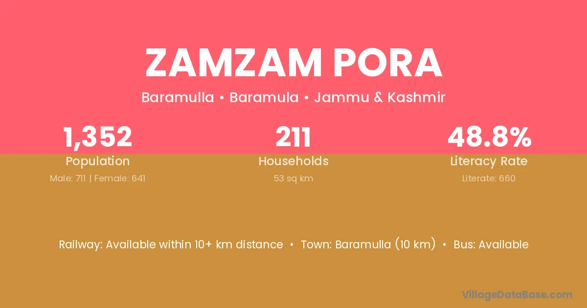 Zamzam Pora village has a total population of 1,352 people, of which 711 are males and 641 are females.