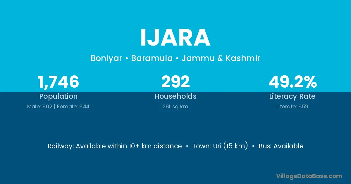 Uri (15 km) is the nearest town to Ijara village for major economic activities and is located approximately 15 km away.