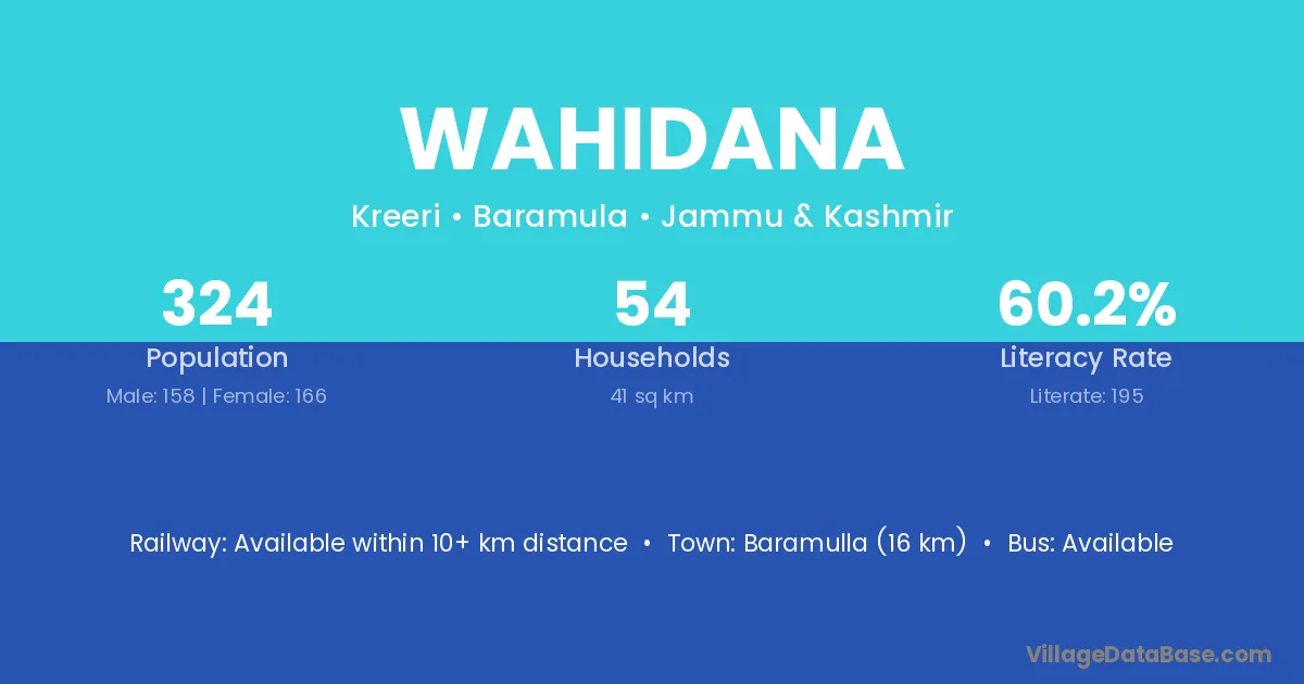 Baramulla (16 km) is the nearest town to Wahidana village for major economic activities and is located approximately 16 km away.