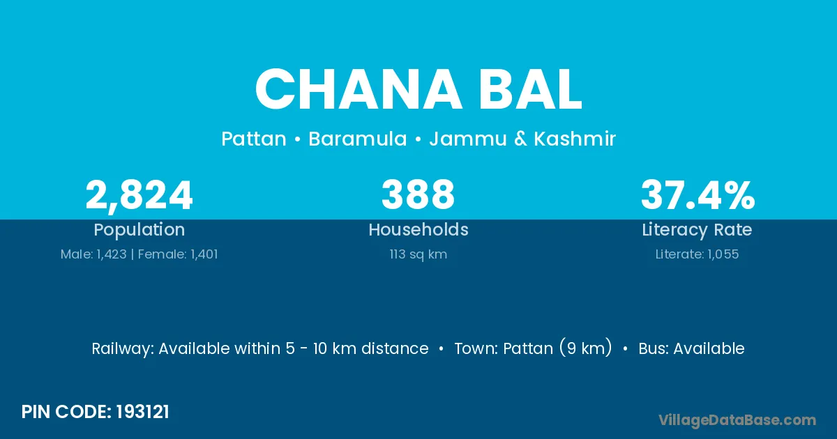 Pattan (9 km) is the nearest town to Chana Bal village for major economic activities and is located approximately 9 km away.