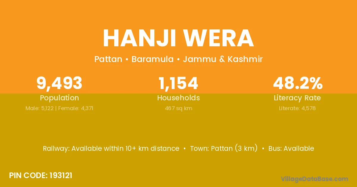 Pattan (3 km) is the nearest town to Hanji Wera village for major economic activities and is located approximately 3 km away.