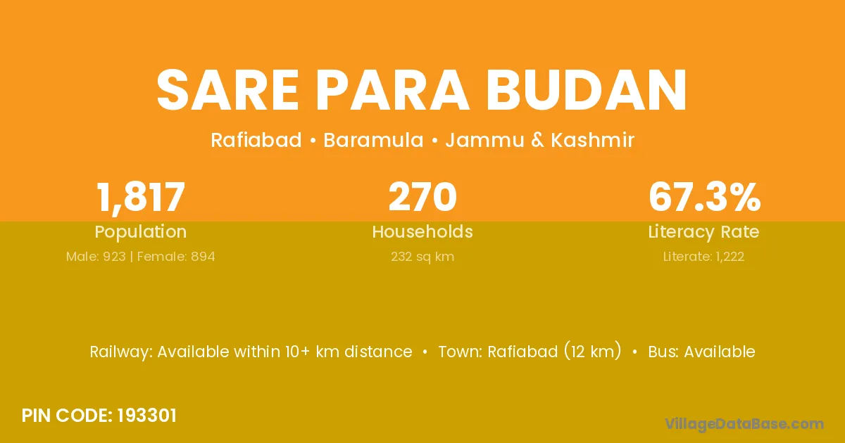 Sare Para Budan village has a total population of 1,817 people, of which 923 are males and 894 are females.