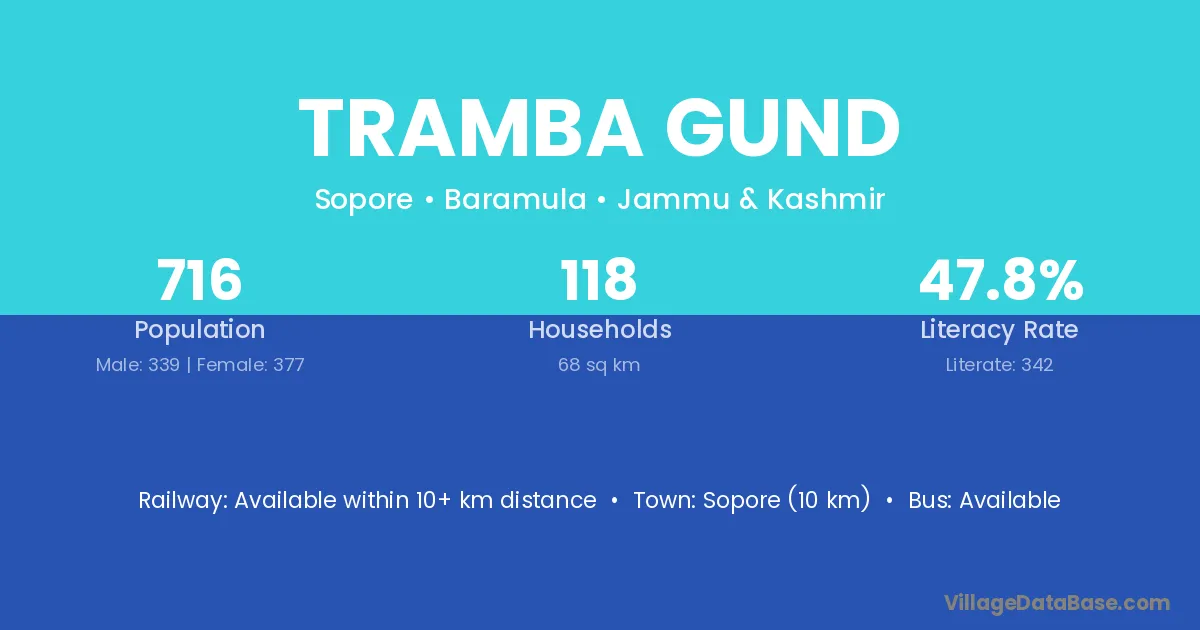 Sopore (10 km) is the nearest town to Tramba Gund village for major economic activities and is located approximately 10 km away.