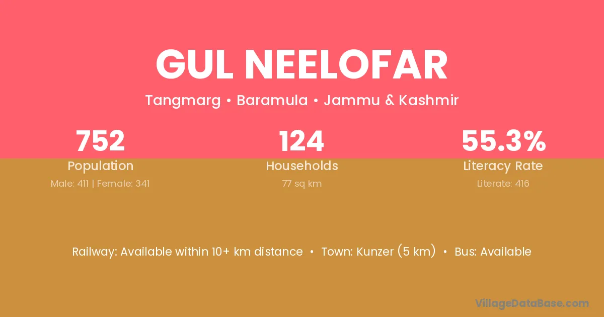 Kunzer (5 km) is the nearest town to Gul Neelofar village for major economic activities and is located approximately 5 km away.