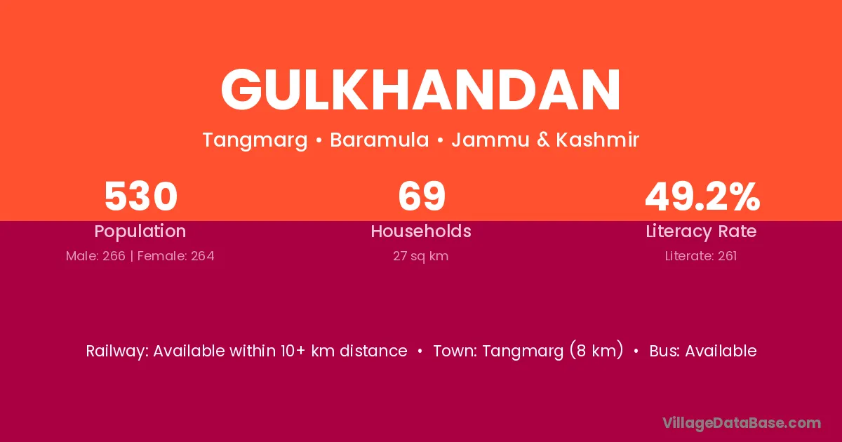 Gulkhandan village has a total population of 530 people, of which 266 are males and 264 are females.
