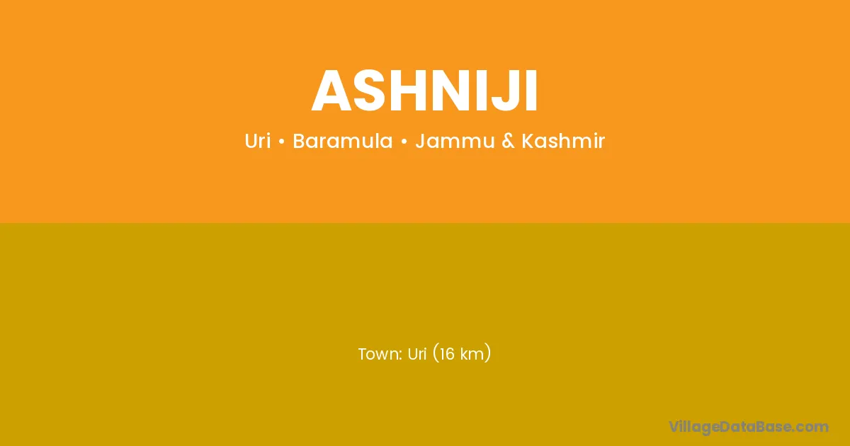 Uri (16 km) is the nearest town to Ashniji village for major economic activities and is located approximately 16 km away.