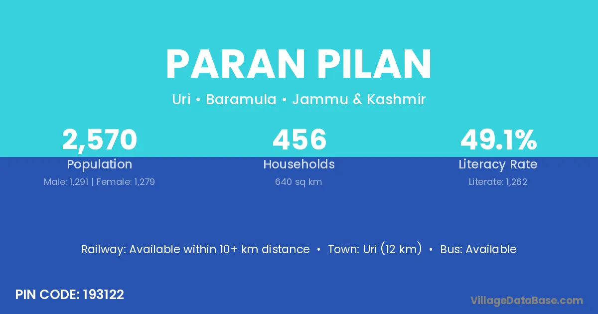 Uri (12 km) is the nearest town to Paran Pilan village for major economic activities and is located approximately 12 km away.