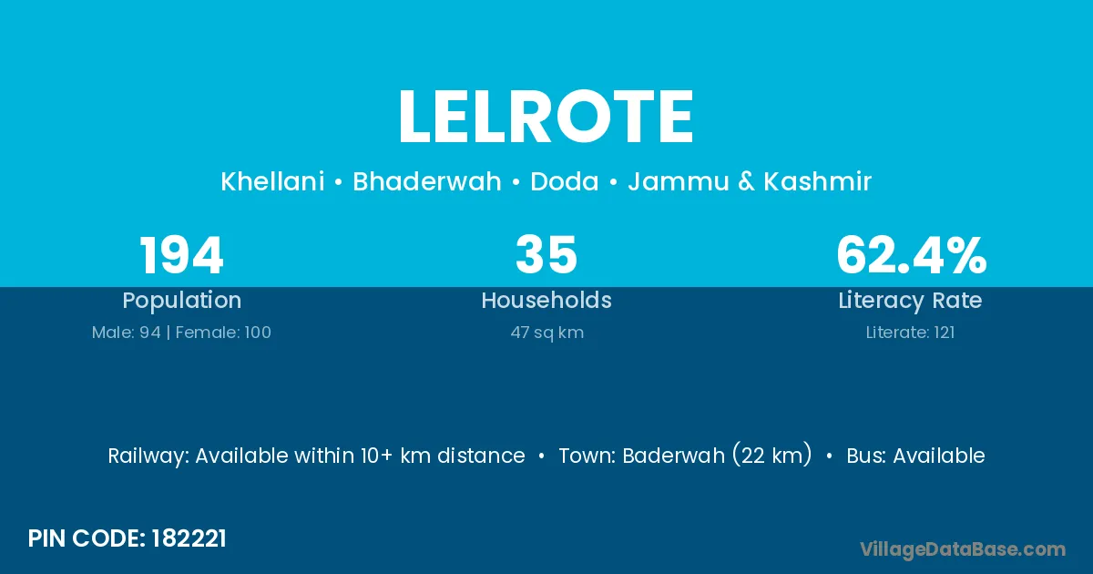 Baderwah (22 km) is the nearest town to Lelrote village for major economic activities and is located approximately 22 km away.