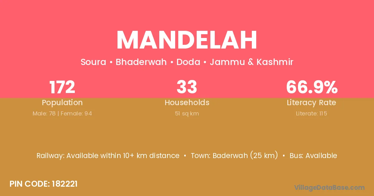 According to Census 2011 information, the village code of Mandelah village is 182221.