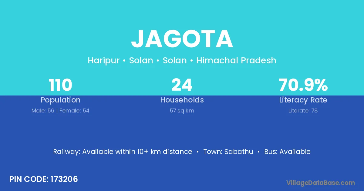 Doda (20 km) is the nearest town to Jagota village for major economic activities and is located approximately 20 km away.