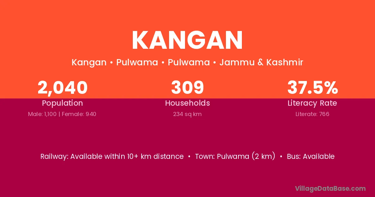Ganderbal (23 km) is the nearest town to Kangan village for major economic activities and is located approximately 23 km away.
