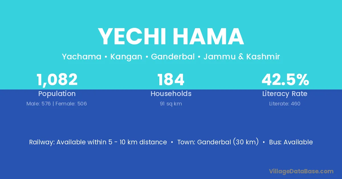Ganderbal (30 km) is the nearest town to Yechi Hama village for major economic activities and is located approximately 30 km away.