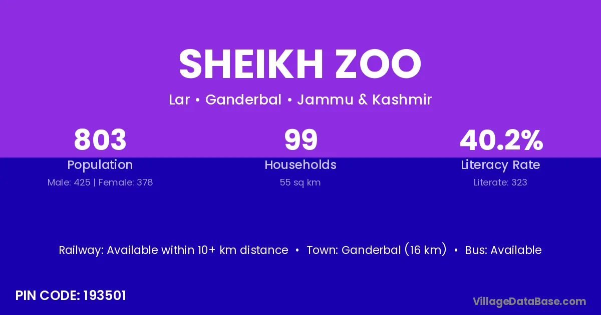 Sheikh Zoo village has a total population of 803 people, of which 425 are males and 378 are females.