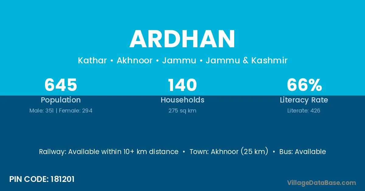 Akhnoor (25 km) is the nearest town to Ardhan village for major economic activities and is located approximately 25 km away.