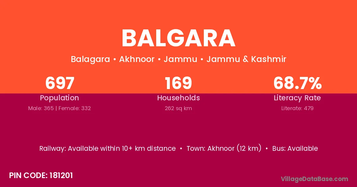 Akhnoor (12 km) is the nearest town to Balgara village for major economic activities and is located approximately 12 km away.