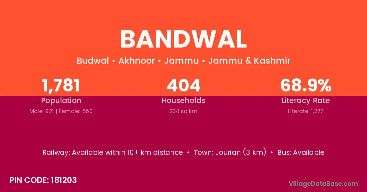 Jourian (3 km) is the nearest town to Bandwal village for major economic activities and is located approximately 3 km away.