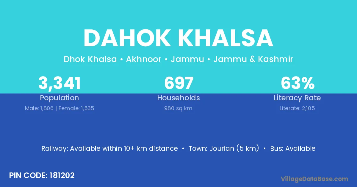 Jourian (5 km) is the nearest town to Dahok Khalsa village for major economic activities and is located approximately 5 km away.