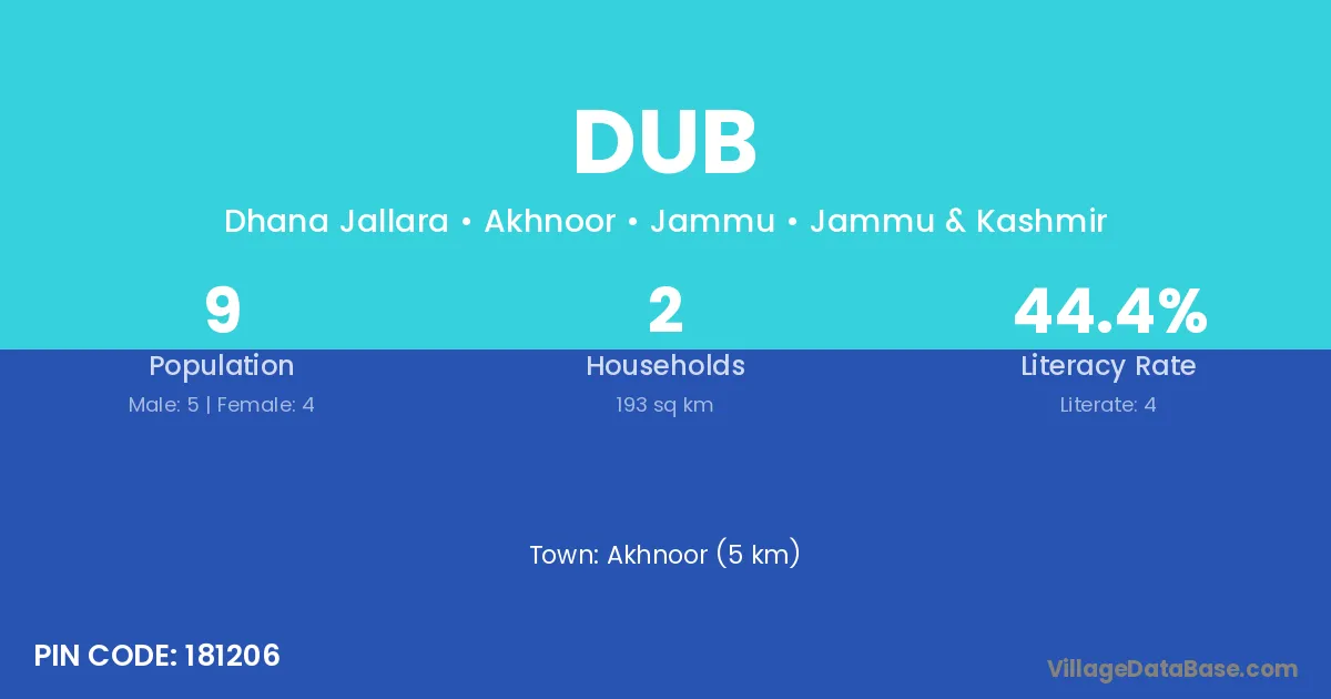 Akhnoor (5 km) is the nearest town to Dub village for major economic activities and is located approximately 5 km away.