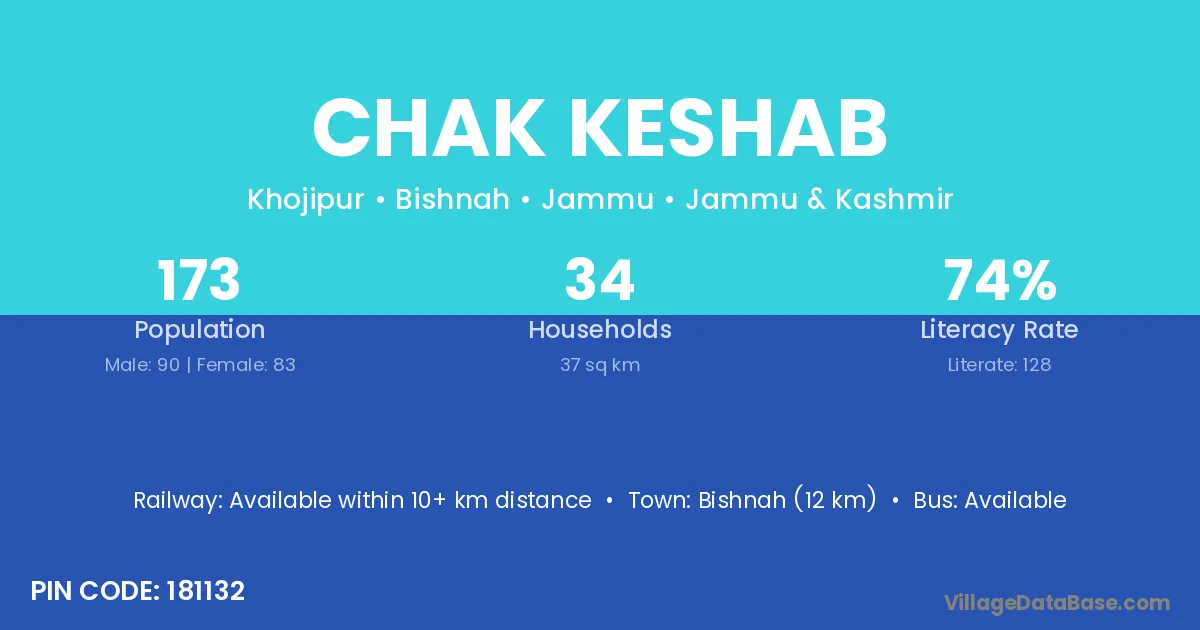 Chak Keshab village has a total population of 173 people, of which 90 are males and 83 are females.