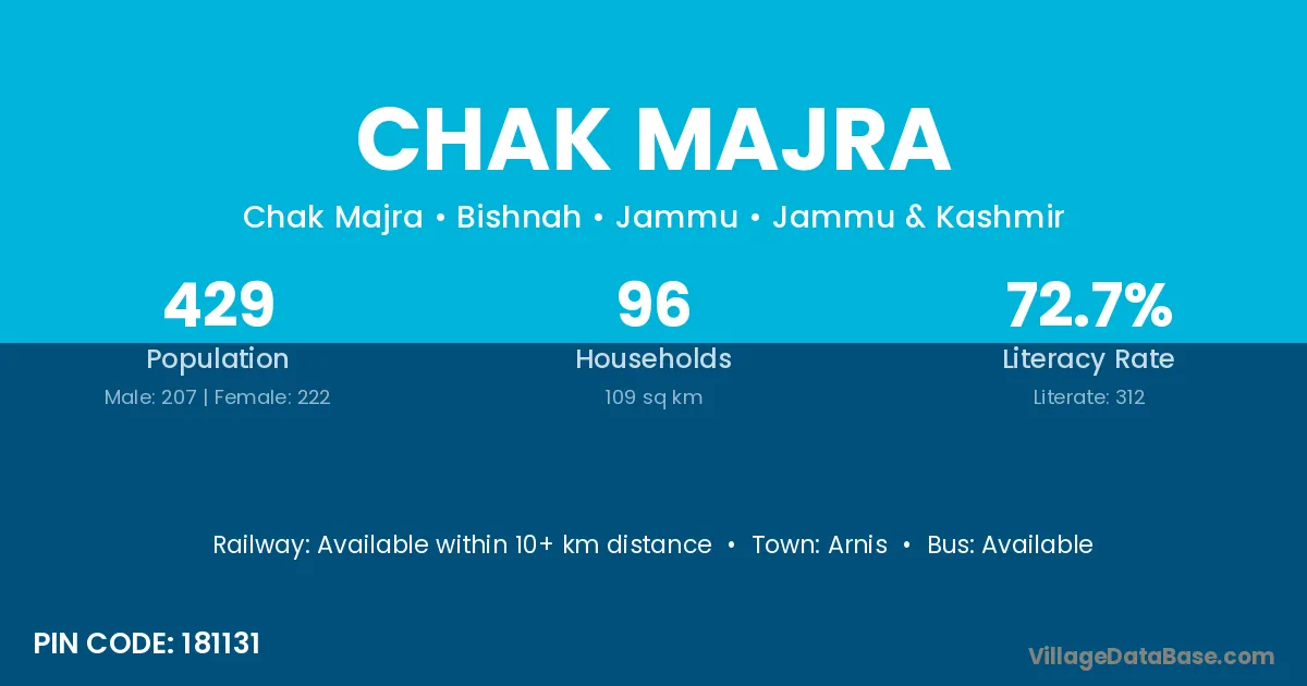 Chak Majra village has a total population of 429 people, of which 207 are males and 222 are females.
