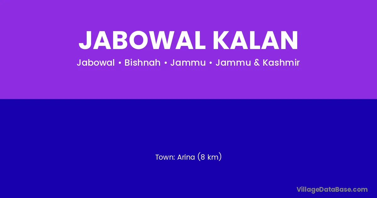 Arina (8 km) is the nearest town to Jabowal Kalan village for major economic activities and is located approximately 8 km away.