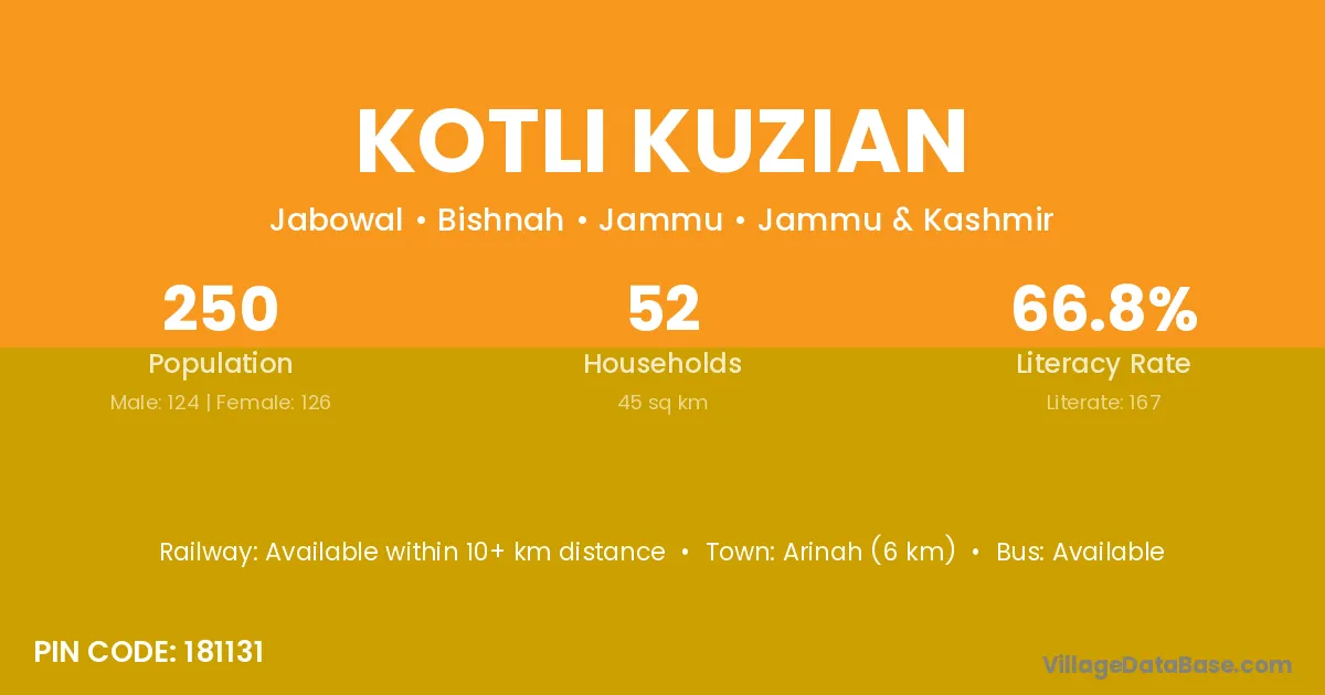 Kotli Kuzian village has a total population of 250 people, of which 124 are males and 126 are females.