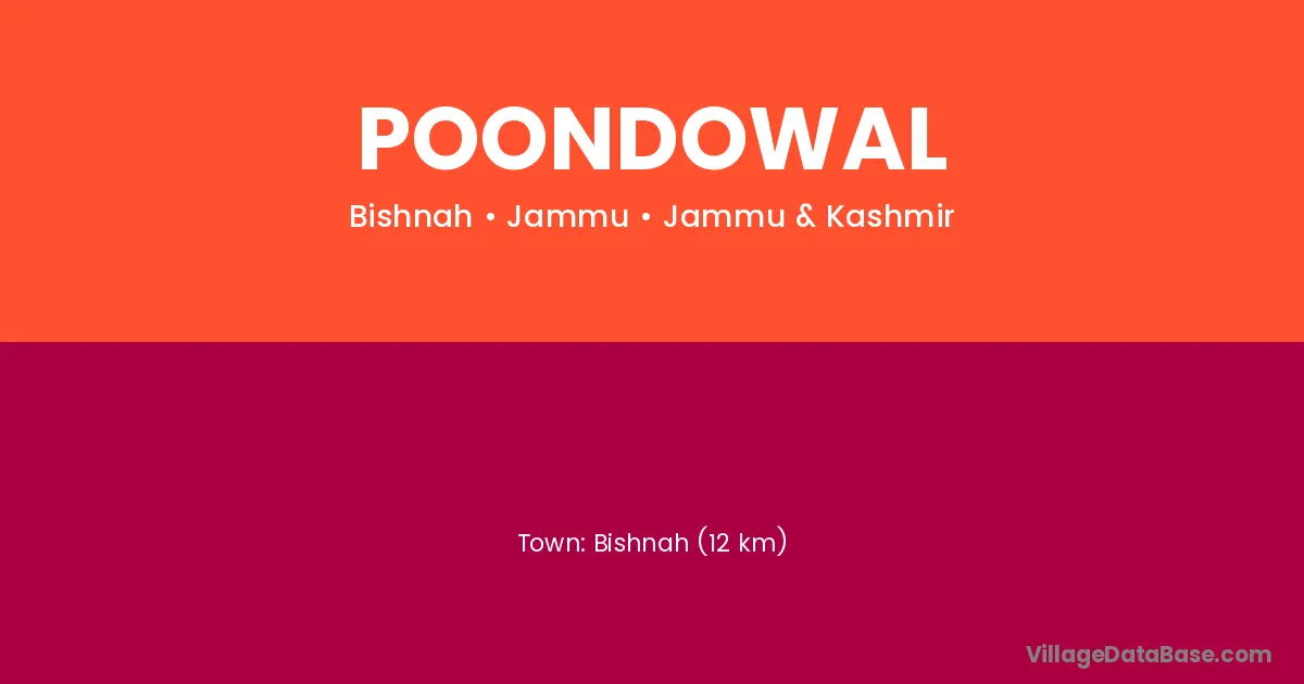 Bishnah (12 km) is the nearest town to Poondowal village for major economic activities and is located approximately 12 km away.