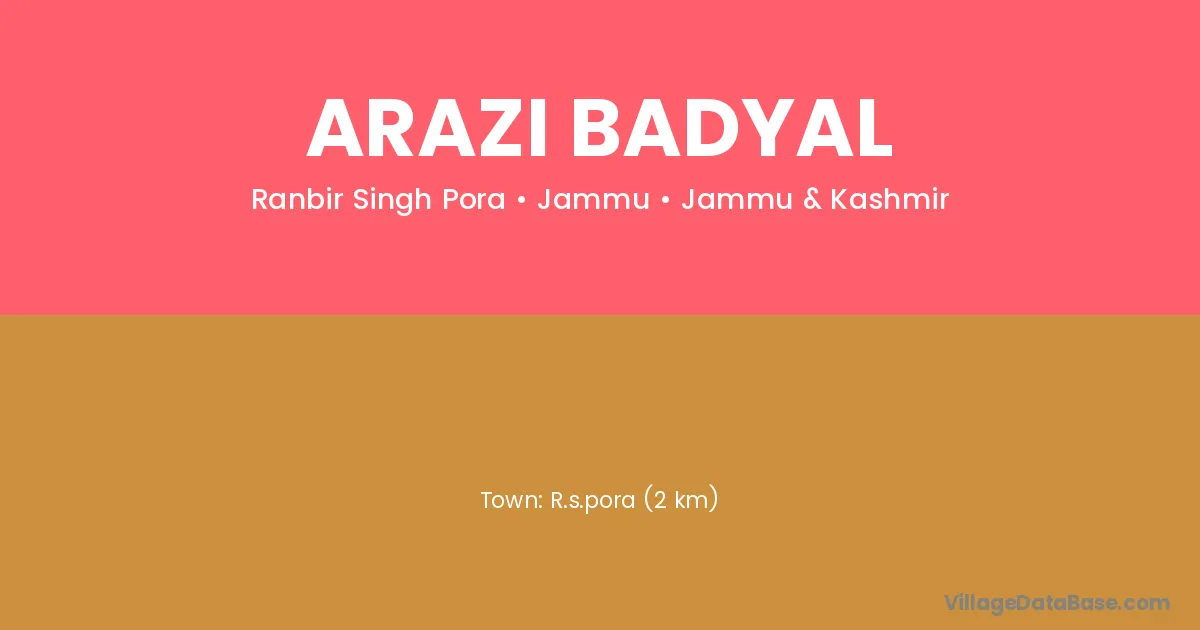 R.s.pora (2 km) is the nearest town to Arazi Badyal village for major economic activities and is located approximately 2 km away.