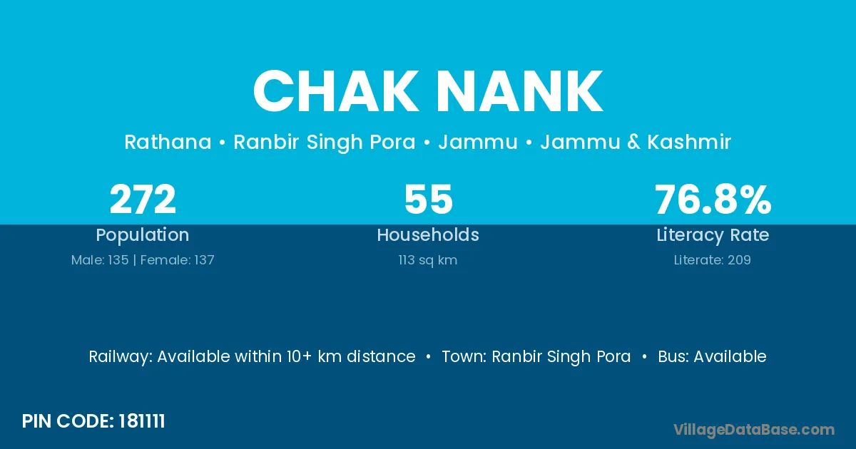 Ranbir Singh Pora is the nearest town to Chak Nank village for major economic activities