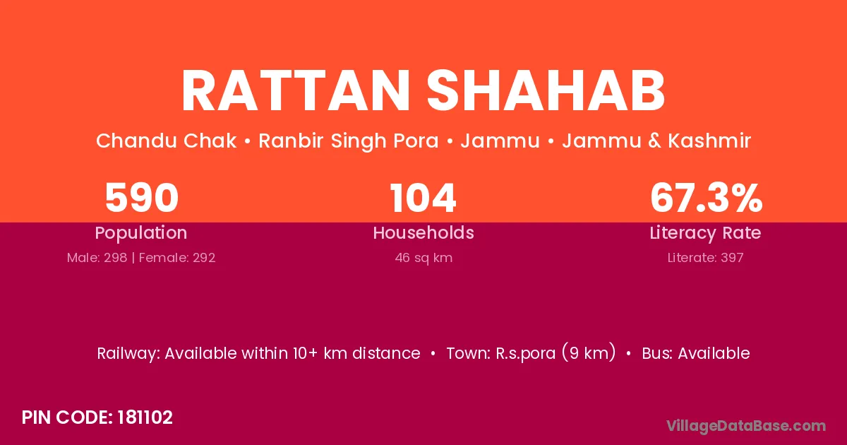 Rattan Shahab village has a total population of 590 people, of which 298 are males and 292 are females.