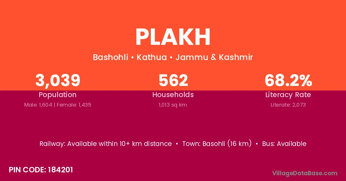According to Census 2011 information, the village code of Plakh village is 184201.