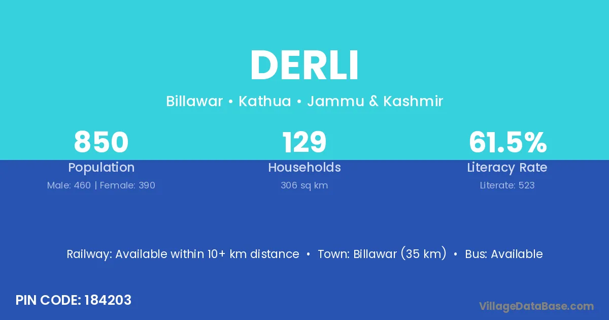 According to Census 2011 information, the village code of Derli village is 184203.