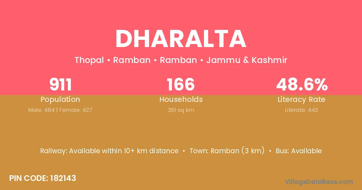 Billawar (16 km) is the nearest town to Dharalta village for major economic activities and is located approximately 16 km away.