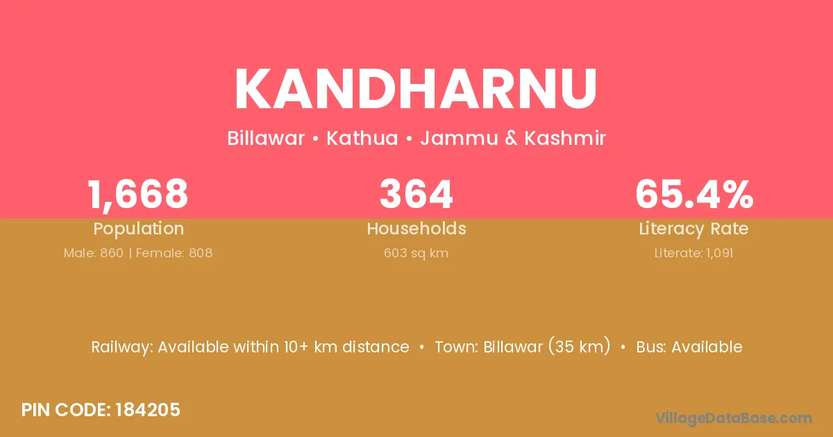 Kandharnu village is located in the Billawar Tehsil of the Kathua district in Jammu & Kashmir .