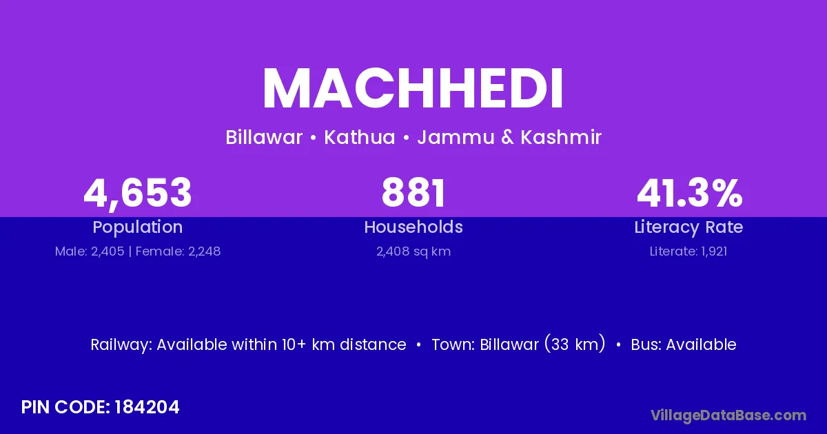 Machhedi village is located in the Billawar Tehsil of the Kathua district in Jammu & Kashmir .