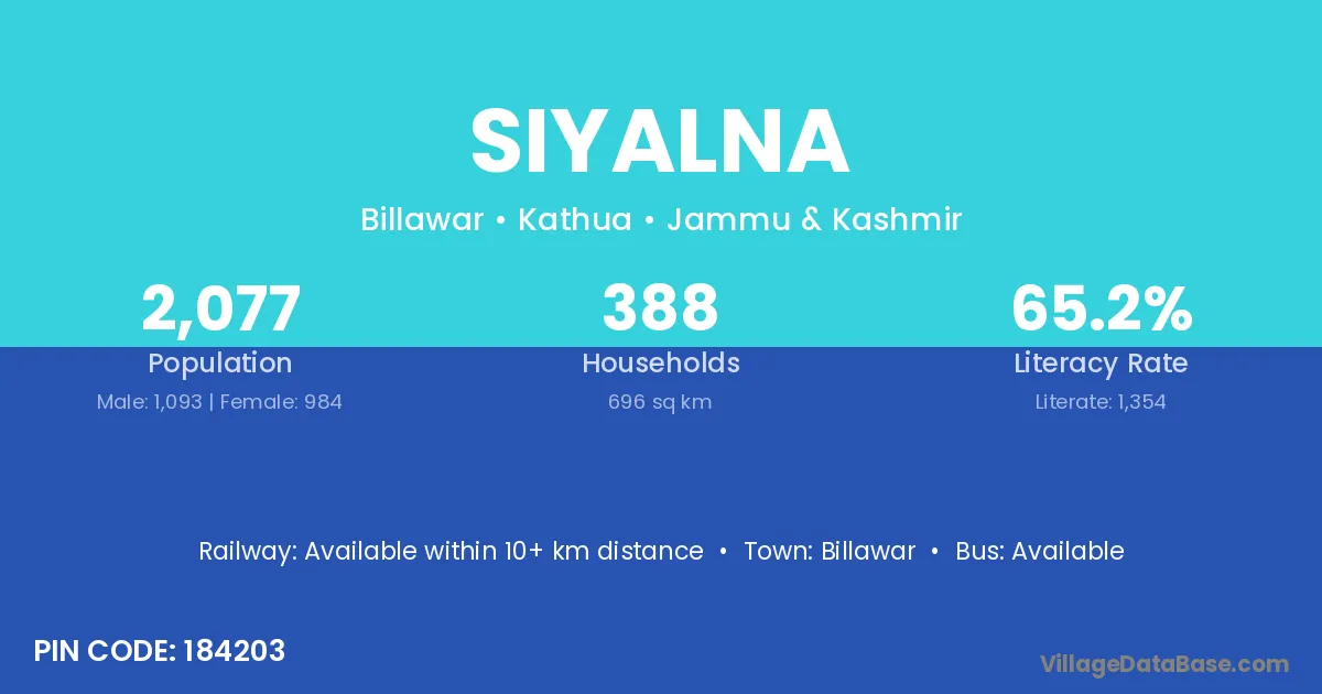 Billawar is the nearest town to Siyalna village for major economic activities