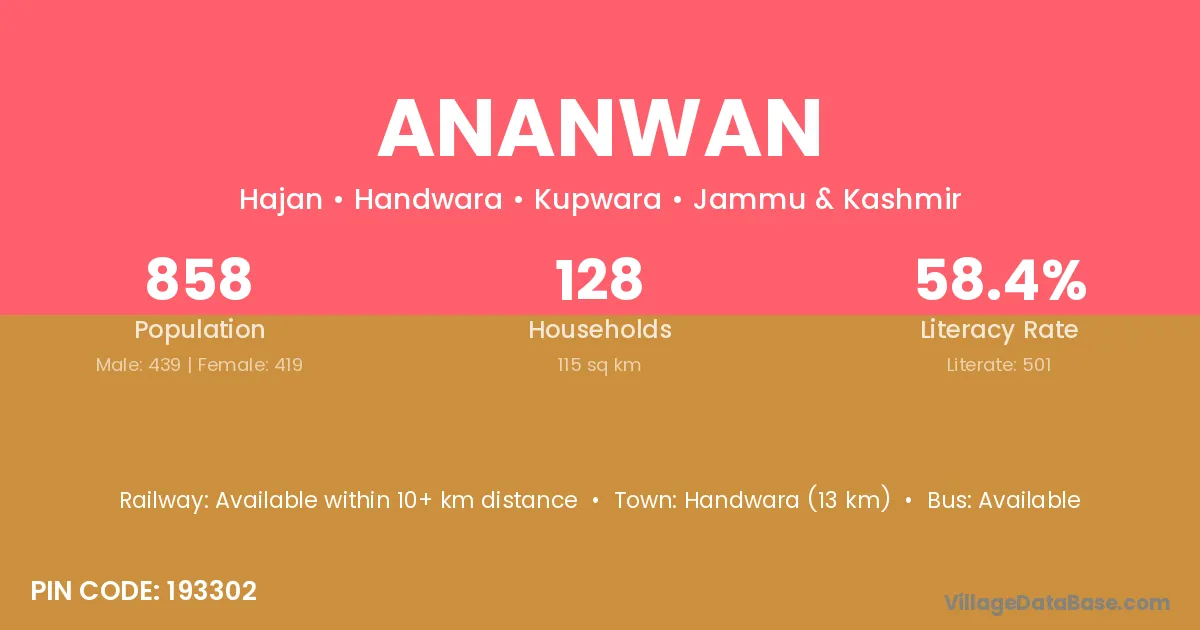 Handwara (13 km) is the nearest town to Ananwan village for major economic activities and is located approximately 13 km away.