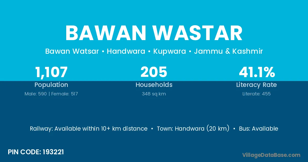 Handwara (20 km) is the nearest town to Bawan Wastar village for major economic activities and is located approximately 20 km away.