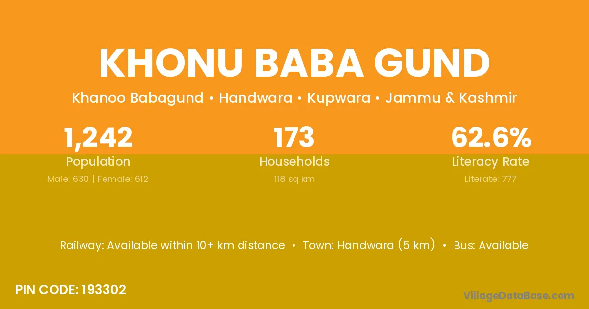 Khonu Baba Gund village has a total population of 1,242 people, of which 630 are males and 612 are females.