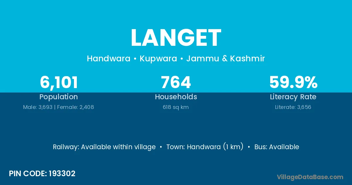 Handwara (1 km) is the nearest town to Langet village for major economic activities and is located approximately 1 km away.
