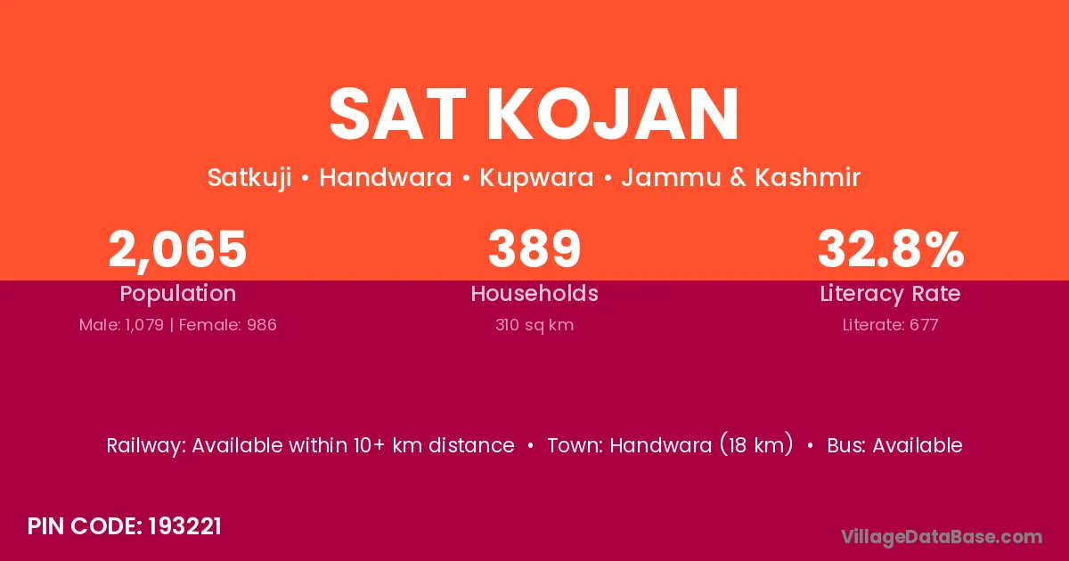 Handwara (18 km) is the nearest town to Sat Kojan village for major economic activities and is located approximately 18 km away.