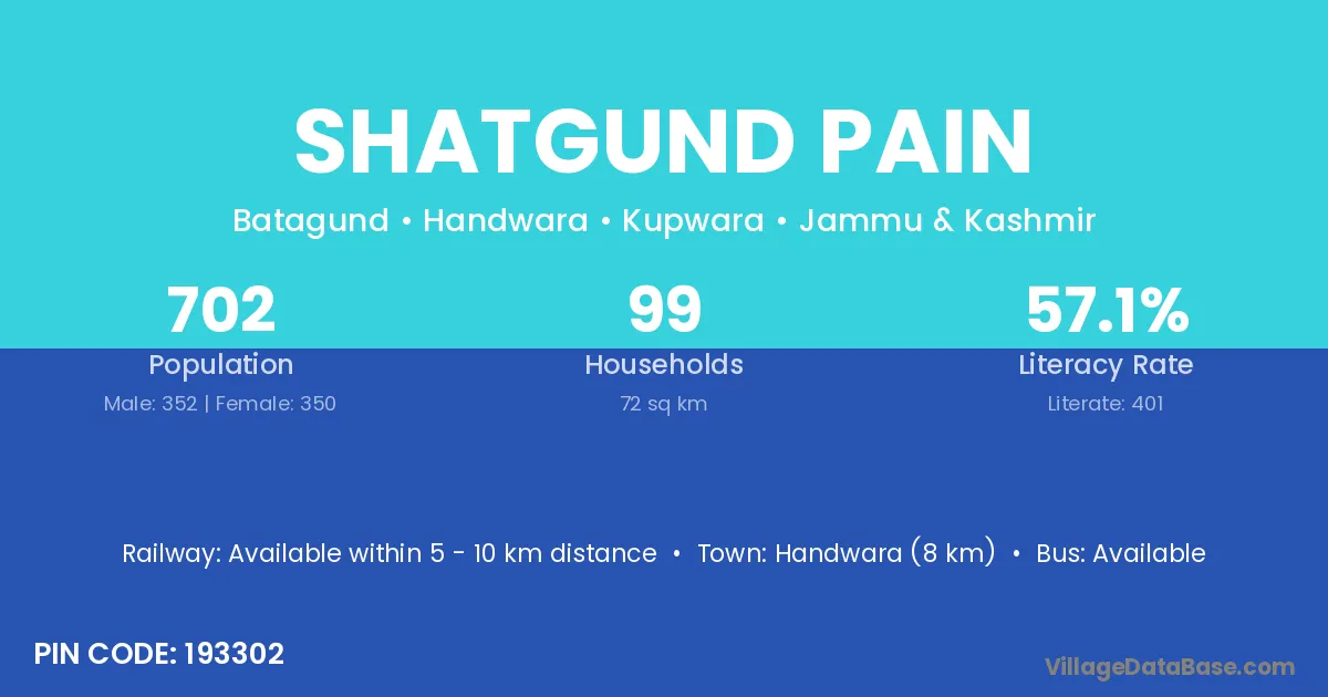 Handwara (8 km) is the nearest town to Shatgund Pain village for major economic activities and is located approximately 8 km away.