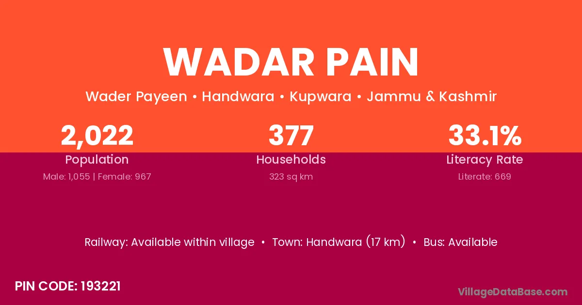 Handwara (17 km) is the nearest town to Wadar Pain village for major economic activities and is located approximately 17 km away.