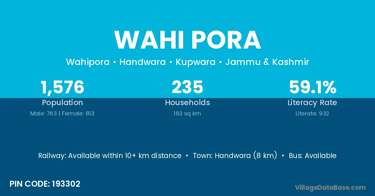 Handwara (8 km) is the nearest town to Wahi Pora village for major economic activities and is located approximately 8 km away.
