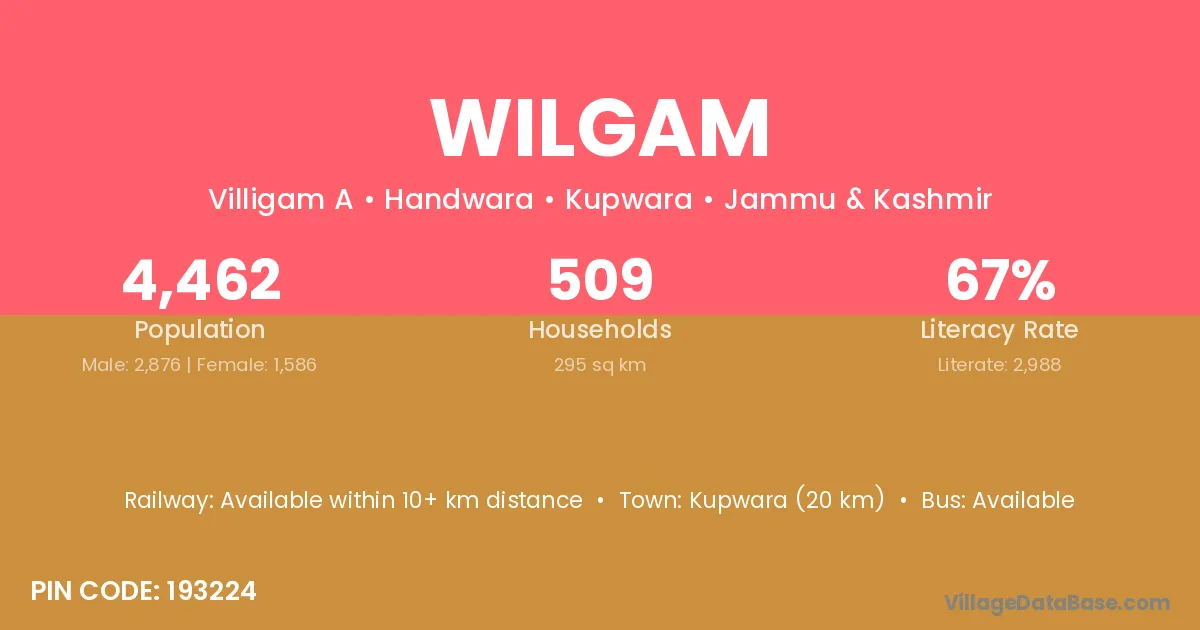Kupwara (20 km) is the nearest town to Wilgam village for major economic activities and is located approximately 20 km away.