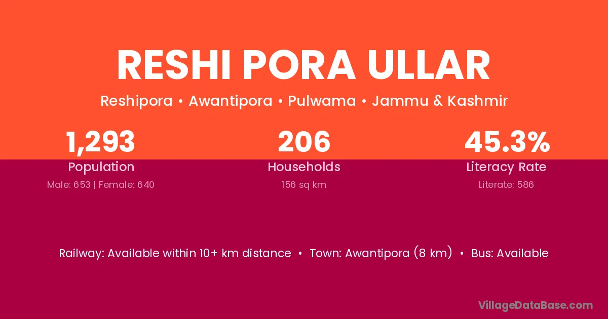 Reshi Pora Ullar village has a total population of 1,293 people, of which 653 are males and 640 are females.