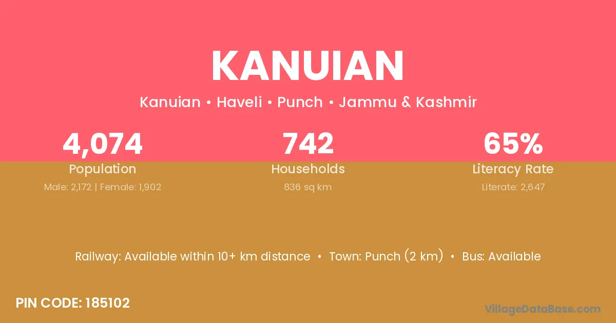 Punch (2 km) is the nearest town to Kanuian village for major economic activities and is located approximately 2 km away.