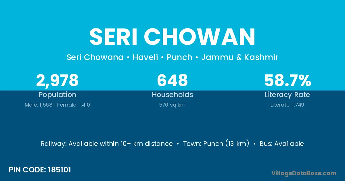 Punch (13 km) is the nearest town to Seri Chowan village for major economic activities and is located approximately 13 km away.