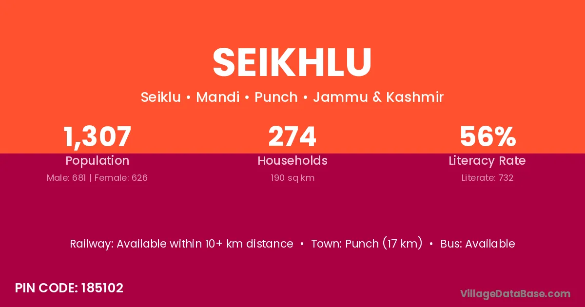 Punch (17 km) is the nearest town to Seikhlu village for major economic activities and is located approximately 17 km away.