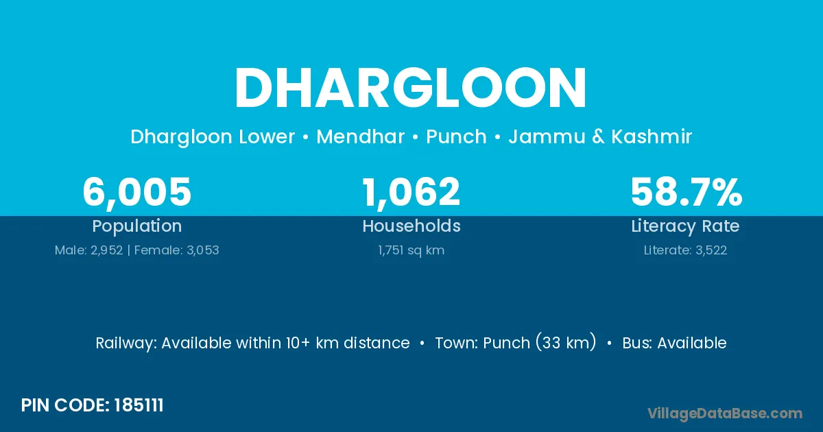 Punch (33 km) is the nearest town to Dhargloon village for major economic activities and is located approximately 33 km away.